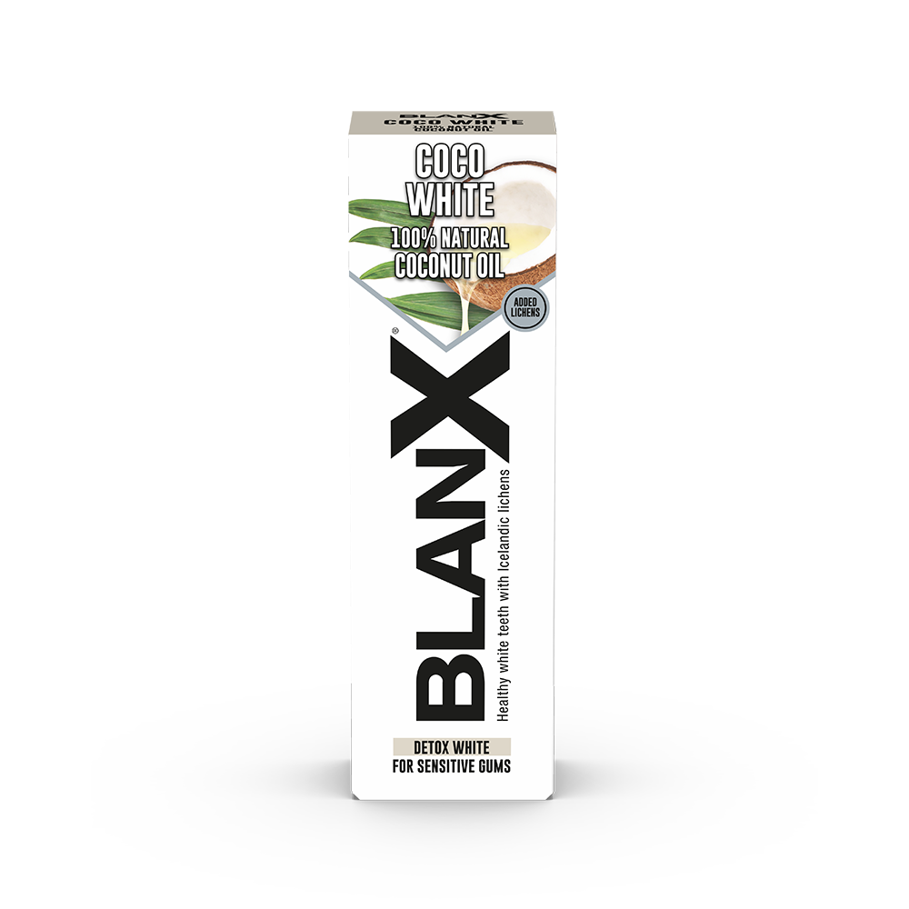Pasta do zębów BlanX® Coco White delikatnie wybiela zęby, jednocześnie działając kojąco i detoksykująco. Teraz z udoskonaloną formułą z dodatkiem porostów!